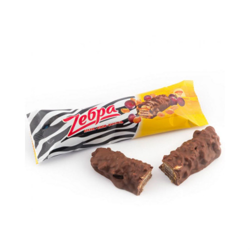 Батончик "Зебра" 40 грамм производства кондитерской фабрики Яшкино можно купить оптом с доставкой по Москве, Подмосковью и ЦФО. Низкая цена обусловлена отсутствием посредников при наличии прямого договора с производителем.  Все актуальные сертификаты в наличии. Минимальный заказ: 1 коробка